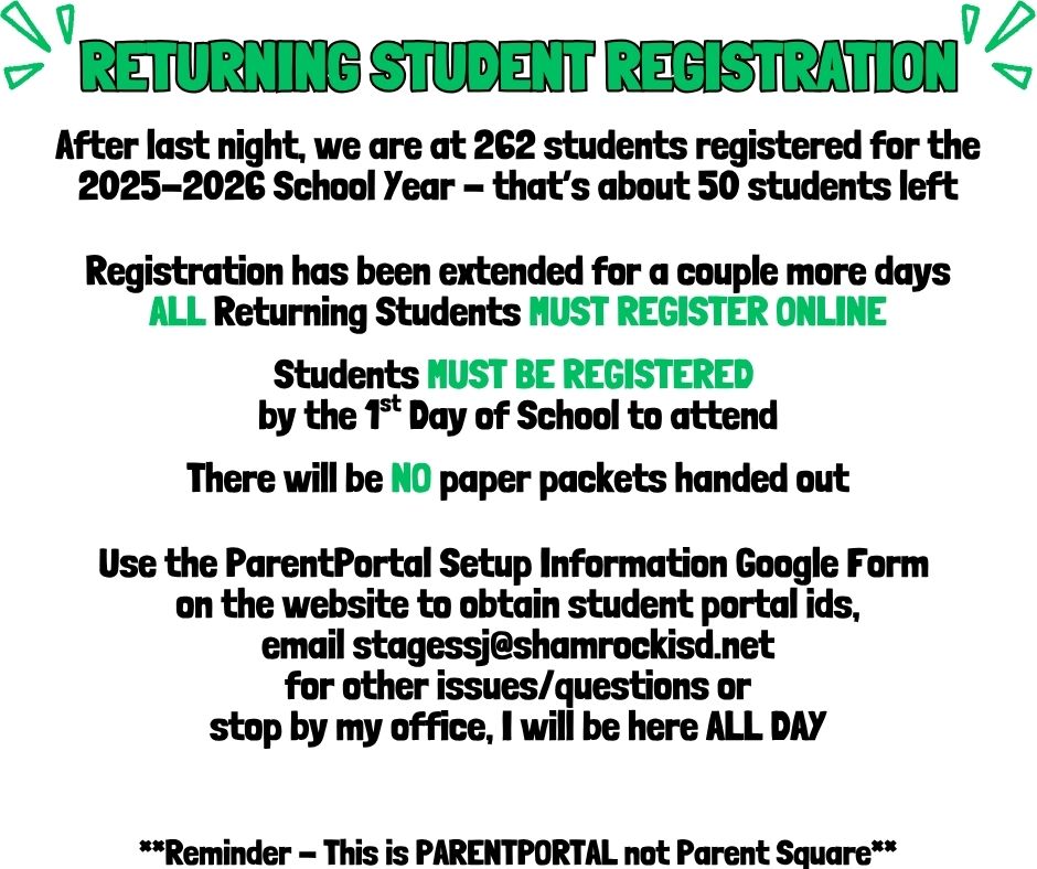 This can also be found on the Shamrock ISD Webpage
