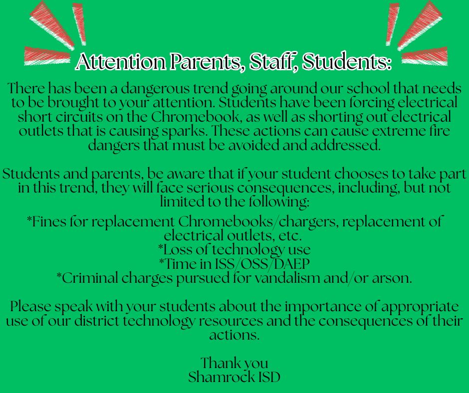 This can also be found on the Shamrock ISD Webpage